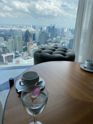 こんばんは、ジョージアおさるです。 土曜日の昼からはアフタヌーンティーです。 今だけ56階のThe Loftと言う場所で楽しめます。 日系のツアー会社で申し込むと少し安くなります。2150THB+姫様の飲み物代。コーラ1本に サービス料と税金付いて200THB以上!…