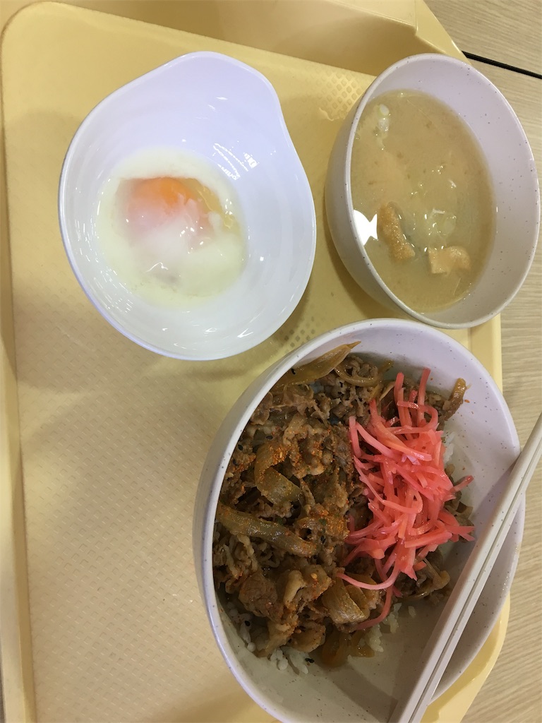 牛丼は美味しかったし、生卵でないのは