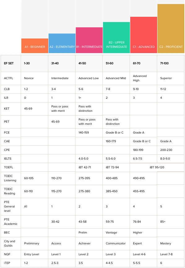 EF SETのチャートは各国の英語能力試験との